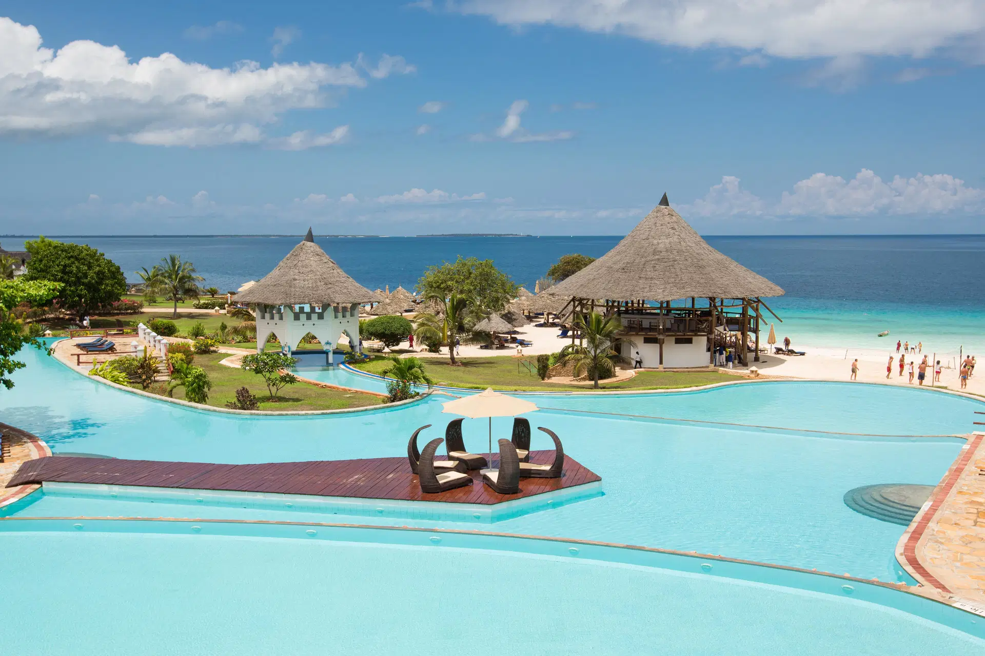 24ωρη ρεσεψιόν, κεντρικό εστιατόριο που σερβίρει διεθνή κουζίνα, a la carte εστιατόριο The Cliff at Royal Zanzibar (10:00 – 18:00, 19:00, 21:30), 4 μπαρ: κεντρικό Mapenzi (08:00 – 24:00), μπαρ πισίνας Upepo (10:00-18:00), μπαρ παραλίας Baraza (10:00-18:00), Coco Bar που σερβίρει σνακ και ποτά (10:00-22:00, μόνο ποτά μετά τις 18:00). Το ξενοδοχείο διαθέτει 4 πισίνες, συμπεριλαμβανομένης μιας πισίνας υπερχείλισης και μιας με τζακούζι. Επιπλέον: ανταλλακτήριο συναλλάγματος, μπουτίκ με σουβενίρ.